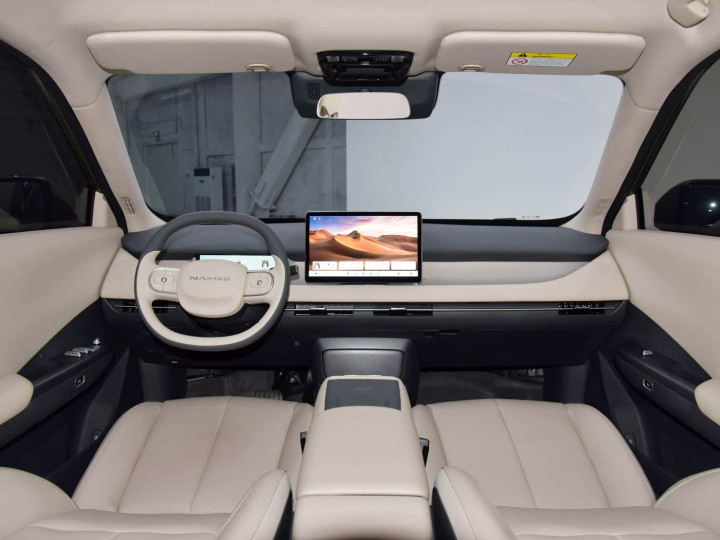 如果说外观还是有点凌乱,那么内饰就简约多了,这也符合大家对于一台纯电动车的审美喜好。大尺寸悬浮式中控屏不用多说,尺寸肯定不像级别更高的车型那么大,但整体观感倒也不错。仪表也和中控台齐平,整体感很强。双辐式方向盘的设计,运动感同样凸显。中控台还采用了双色的设计,层次感很到位。